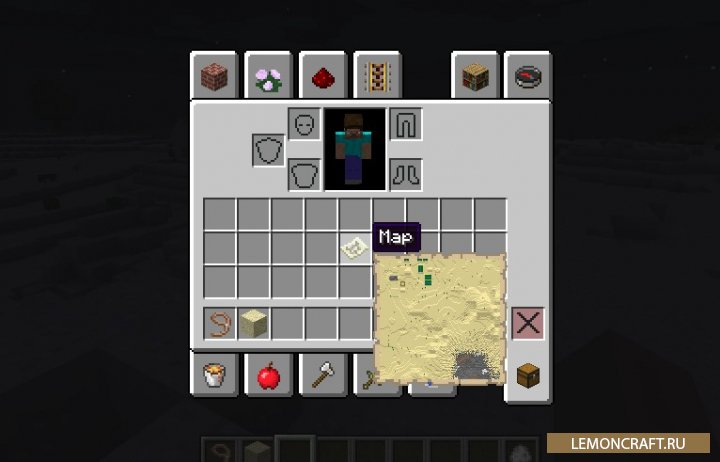 Мод на быстрый просмотр карт Map Tooltip небольшая, но довольно полезная модификация, которая позволяет осуществлять просмотр карты не открывая ее. Для этого достаточно навести курсор на карту, лежащую в вашем инвентаре, и вы сможете увидеть все детали данной карты.